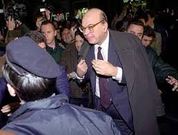 Il dc Francesco D’Onofrio accusa Msi e Lega di aver salvato Craxi nel segreto dell’urna, per delegittimare il Parlamento e scatenare la piazza. Gli risponde urlando Gianfranco Fini, suo futuro alleato: “È una mascalzonata, siete stati voi ladri a difendere un ladro”. E Bossi: “È una mascalzonata dei porci democristiani”. I socialisti si trasferiscono in massa all’hotel Raphael a festeggiare Craxi. Arriva anche Berlusconi. Maroni invoca “elezioni subito”. Diego Novelli annuncia che la Rete si autosospende dal Parlamento “per non confondersi con la palude del regime della corruzione” . Occhetto ritira dal governo neonato: i ministri Visco, Barbera e Berlinguer, seguiti a ruota dal verde Rutelli. Il “popolo dei fax” si mobilita. In piazza sventolano di bandiere rosse miste a quelle verdi della Lega e tricolori dell’Msi. Sul Corriere, il giustizialista Galli della Loggia si straccia le vesti: “E’ ormai chiaro che sulla scena pubblica italiana esiste un nocciolo duro di malaffare politico… Dc-Psi sufficientemente forte per tentare una battaglia di resistenza contro il cambiamento”.